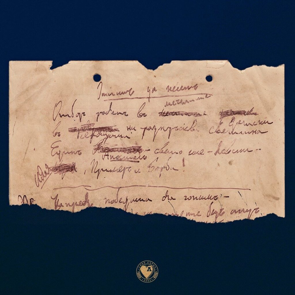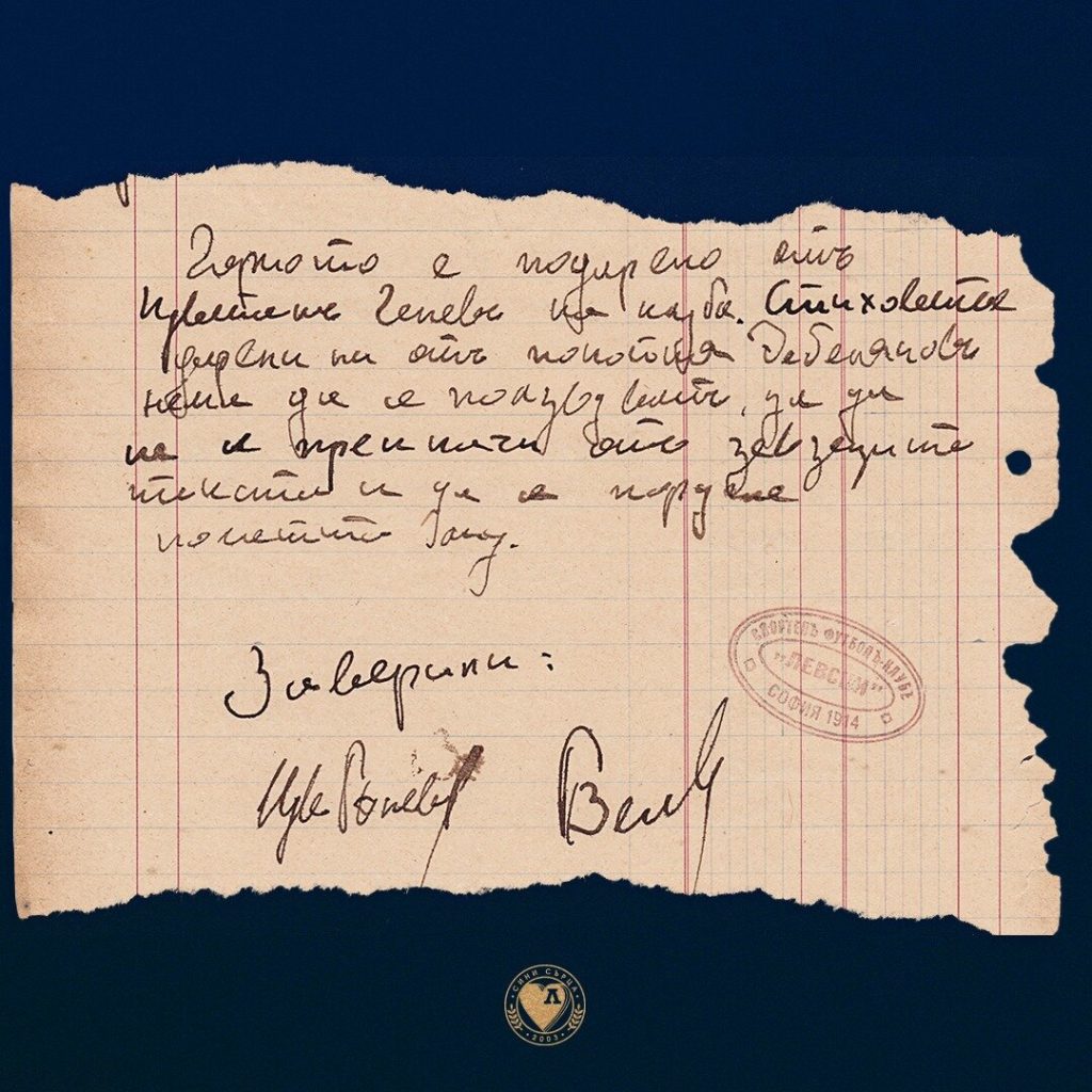 През 1915 г. поетът е на военна подготовка в ШЗО Княжево, където върху бланка за муниции посвещава стихове на СК „Левски“. Неговият „Опит за песен“ започва така: